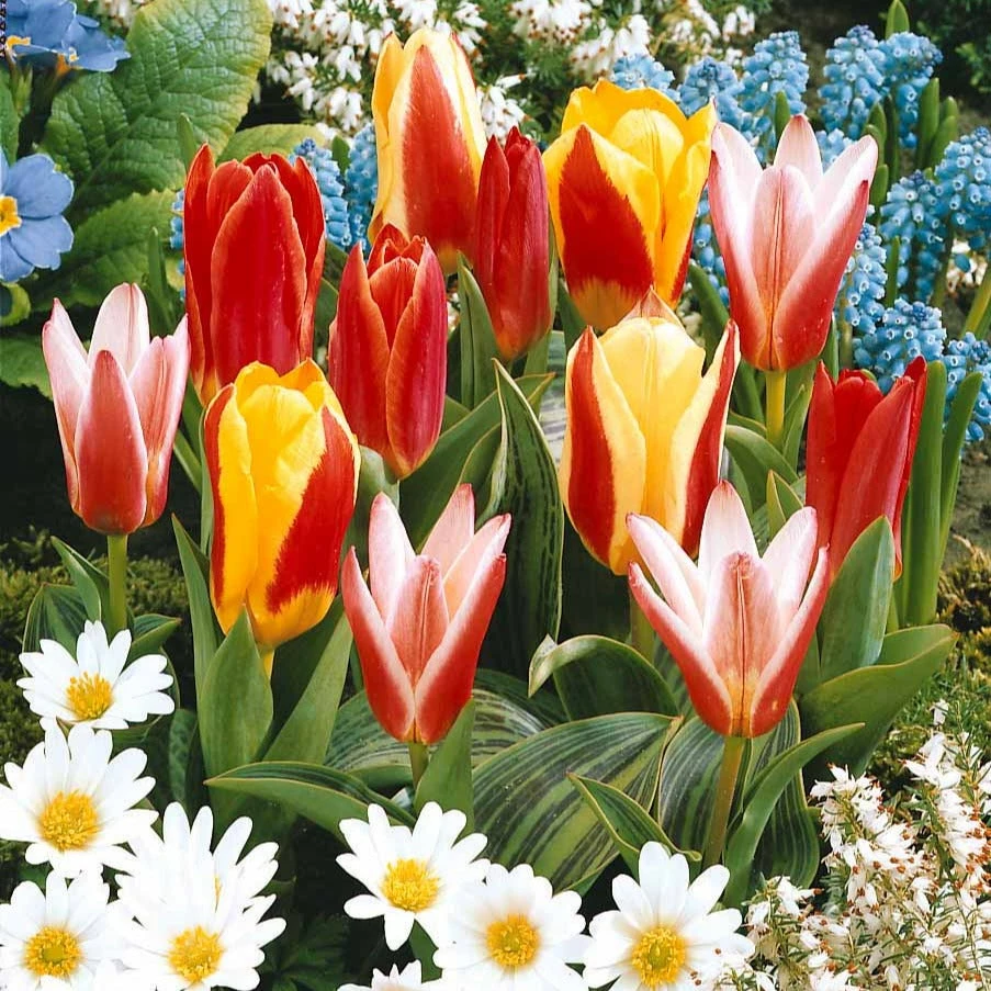 En choisissant cette superbe collection, vous serez assuré d’un jardin bien fleuri durant les 3 mois du printemps. Vous ferez ainsi l’admiration de vos visiteurs et vous pourrez préparer en plus de superbes bouquets pour la maison. Une collection vraiment incontournable pour tous les jardiniers ! Comprend : 20 tulipes botaniques Kaufmanniana (10/11), 20 tulipes « Perroquet » (10/11), 20 tulipes tardives à longues tiges Single Late (11/12).